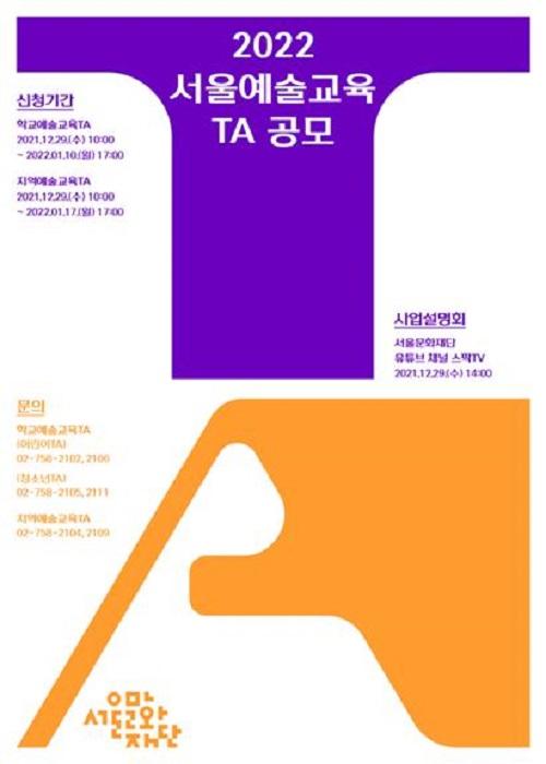 [Çѱ¹BBC¹æ¼Û´º½º=Á¤ÁöÀ± ±âÀÚ] ¼­¿ï¹®È­Àç´Ü(´ëÇ¥ÀÌ»ç ÀÌâ±â)Àº ¼­¿ï½Ã³» Çб³¿Í Áö¿ª °ÅÁ¡ Ű¿ò¼¾ÅÍ µî¿¡¼­ ¿¹¼ú ¼ö¾÷À» ÁøÇàÇÒ ±³À°¿¹¼ú°¡(Teaching Artist, TA)¿Í ±³À°´Üü¸¦ ¼±¹ßÇÏ´Â 2022³â ¼­¿ï¿¹¼ú±³À°»ç¾÷ °ø¸ð¸¦ 27ÀÏ(¿ù)ºÎÅÍ ³»³â 2¿ù 16ÀÏ(¼ö)±îÁö ÁøÇàÇÑ´Ù¡¦