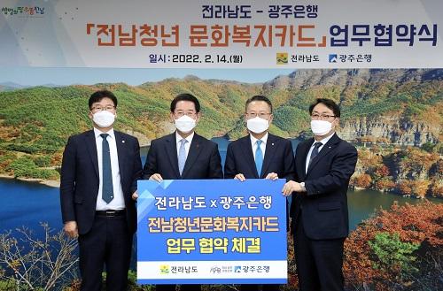 [Çѱ¹BBC¹æ¼Û´º½º=Á¤ÁöÀ± ±âÀÚ] Àü¶ó³²µµ´Â û³â¿¡°Ô ±³Å빮ȭºñ¸¦ Áö¿øÇÏ´Â ¡®Ã»³â ¹®È­º¹ÁöÄ«µå¡¯ Áö¿ø»ç¾÷ÀÇ È¿À²Àû ÃßÁøÀ» À§ÇØ 14ÀÏ µµÃ» VIP½Ç¿¡¼­ ±¤ÁÖÀºÇà°ú ¾÷¹«Çù¾àÀ» Çß´Ù°í ¹àÇû½À´Ï´Ù. Çù¾à¿¡ µû¶ó ±¤ÁÖÀºÇàÀº û³â ¹®È­º¹ÁöÄ«µå »ç¾÷ÀÇ ¿Â¶óÀÎ ½ÅûÀÌ¡¦
