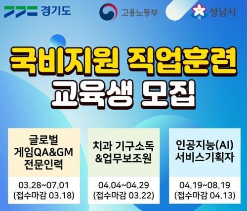 [Çѱ¹BBC¹æ¼Û=¹Ú´ë¿µ ±âÀÚ] ¼º³²½Ã´Â °ÔÀÓ, ÀΰøÁö´É(AI), Ä¡°ú ¾÷¹« º¸Á¶ µî 3°³ ºÐ¾ß¿¡¼­ ¿¬°£ 80¸í¿¡°Ô ¹«·á Á÷¾÷±³À° ÈÆ·ÃÀ» Áö¿øÇÑ´Ù. Àü¹® Àη ¾ç¼º°ú ¾ÈÁ¤ÀûÀÎ ³ëµ¿½ÃÀå Á¤ÂøÀ» À§ÇØ ±¹¡¤µµ¡¤½Ãºñ 2¾ï5000¸¸¿øÀÌ ÅõÀԵǴ Áö¿ª¡¤»ê¾÷ ¸ÂÃãÇü ÀÏÀÚ¸® âÃâ Áö¿ø¡¦