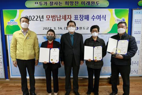 [Çѱ¹BBC¹æ¼Û=À̼±Á¾ ±âÀÚ] ¿Ïµµ±ºÀÌ Áö³­ 14ÀÏ Äڷγª19·Î ¾î·Á¿î °æÁ¦ ¿©°Ç¿¡µµ Áö¹æ¼¼¸¦ ¼º½ÇÈ÷ ³³ºÎÇØ »çȸÀû ¸ð¹üÀÌ µÈ ¹ýÀΰú °³Àο¡°Ô ¡¸2022³â Àü¶ó³²µµ ¸ð¹ü ³³¼¼ÀÚ¡¹ ǥâÆÐ¿Í Áõ¸í¼­¸¦ Àü´ÞÇß´Ù. ¸ð¹ü ³³¼¼ÀÚ´Â ¡¸Àü¶ó³²µµ ¸ð¹ü ³³¼¼ÀÚ ¿ì´ë ¹× Áö¿ø ¡¦