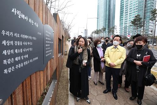 [Çѱ¹BBC¹æ¼Û´º½º=Á¤ÁöÀ± ±âÀÚ] ¡®±âºÐ ÁÁÀº º¯È, ǰ°Ý ÀÖ´Â °³²¡¯À» ½ÇÇö ÁßÀÎ °³²±¸(±¸Ã»Àå Á¤¼ø±Õ)°¡ Áö³´Þ »ï¼ºµ¿ °æ±â°íµîÇб³ ¾ð´ö±æ 400m ±¸°£À» ¡®¹®Á¤Èñ ½ÃÀα桯·Î Á¶¼ºÇß½À´Ï´Ù. ±¸´Â ¡®¼½Ã¡¯, ¡®ºñ¸Á·Ï¡¯, ¡®°Ü¿ï »ç¶û¡¯ µî ½ÃÀÎÀÇ ÀÛǰ 8ÆíÀ» µ¹°ú¡¦