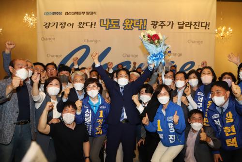[Çѱ¹BBC¹æ¼Û=°­¼º´ë ±âÀÚ] °­±âÁ¤ ¿¹ºñÈ帰¡ ¿À´Â 6¿ù1ÀÏ Ä¡·¯Áö´Â Á¦8ȸ Àü±¹µ¿½ÃÁö¹æ¼±°Å¿¡¼­ ´õºÒ¾î¹ÎÁÖ´ç ±¤ÁÖ±¤¿ª½ÃÀå Èĺ¸·Î È®Á¤µÆ´Ù. °­ ¿¹ºñÈ帴 Áö³­ 23ÀϺÎÅÍ 26ÀÏ ¿ÀÈÄ 6½Ã±îÁö ½Ç½ÃµÈ ´õºÒ¾î¹ÎÁÖ´ç ±¹¹ÎÂü¿©°æ¼±(±Ç¸®´ç¿ø 50%, ¾È½É¹øÈ£¼±°ÅÀ뫆 50¡¦