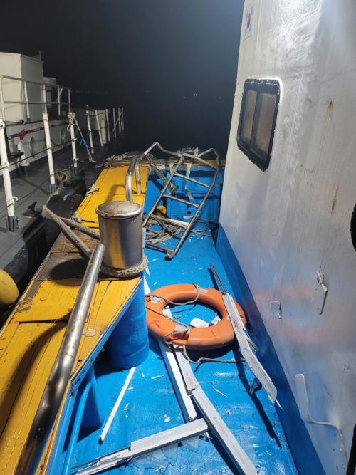 [Çѱ¹BBC¹æ¼Û=±è±â³² ±âÀÚ] ¿©¼öÇØ¾ç°æÂû¼­´Â ¡°¿Àµ¿µµ ÀÎ±Ù ÇØ»ó¿¡¼­ 9Åæ±Þ Åë¼±(¿¬¶ô¼±)°ú 4Åæ±Þ Àá¼ö±â ¾î¼±ÀÌ °æ¹Ì Ãæµ¹·Î ¼±¹Ú ÀϺΰ¡ ÆÄ¼ÕµÇ°í ½Â¼±¿ø 2¸íÀÌ ºÎ»óÀ» ´çÇß´Ù¡±°í 3ÀÏ ¹àÇû´Ù. ¿©¼öÇØ°æ¿¡ µû¸£¸é À̳¯ »õº® 3½Ã 27ºÐ²² ¿©¼ö½Ã ¿Àµ¿µµ ºÏµ¿¹æ ¡¦