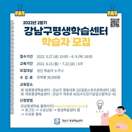 [Çѱ¹BBC¹æ¼Û´º½º=¼®Àç¸í ±âÀÚ] ¡®±âºÐ ÁÁÀº º¯È­, ǰ°Ý ÀÖ´Â °­³²¡¯À» ½ÇÇöÇϰí ÀÖ´Â °­³²±¸°¡ 6¿ù °³°­ÇÏ´Â ¡®2022³â 2ºÐ±â °­³²±¸ Æò»ýÇнÀ¼¾ÅÍ ÇÁ·Î±×·¥¡¯¿¡ Âü¿©ÇÒ ¼ºÀÎ ÇнÀÀÚ¸¦ 27ÀϺÎÅÍ ´ÙÀ½´Þ 9ÀϱîÁö ¡®°­³²Æò»ýÇнÀ¡¯ ȨÆäÀÌÁö¸¦ ÅëÇØ ¸ðÁýÇÑ´Ù°í ¹àÇû½À´Ï´Ù¡¦
