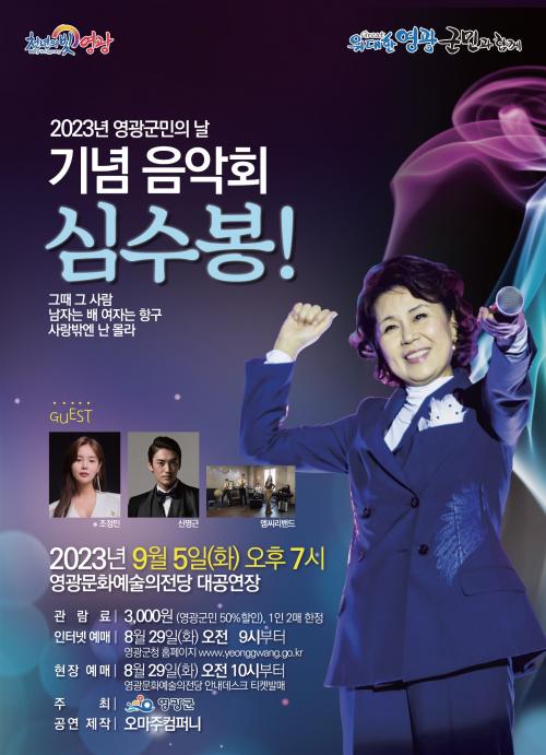 [Çѱ¹BBC¹æ¼Û=ÀÌÁöÇö±âÀÚ] ¿µ±¤±º(±º¼ö °­Á¾¸¸)Àº ¿À´Â 9¿ù 5ÀÏ(È­) ¿ÀÈÄ 7½Ã ¿µ±¤¹®È­¿¹¼úÀÇÀü´ç ´ë°ø¿¬Àå¿¡¼­ ¡®Á¦47ȸ ¿µ±¤±º¹ÎÀdz¯ ±â³äÀ½¾Çȸ ½É¼öºÀ!¡¯À¸·Î ¿µ±¤±º¹Î¿¡°Ô °¨µ¿°ú ÀüÀ²À» ¼±»çÇÑ´Ù. 1978³â µ¥ºß ÀÌ·¡ À½¾Ç¿¡ ´ëÇÑ ²÷ÀÓ¾ø´Â ¿­Á¤°ú ½É¿ÀÇÑ ¼­Á¤¼º¡¦