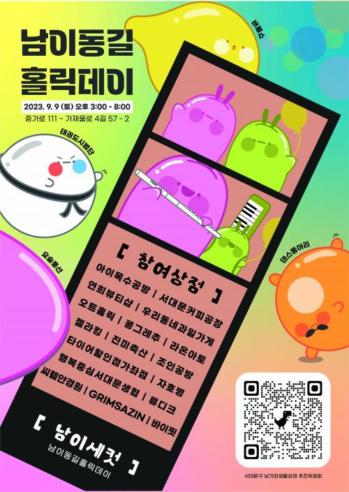 [Çѱ¹BBC¹æ¼Û=À̽ŵ¿±âÀÚ]¼­´ë¹®±¸ ³²°¡Á»ýȰ»ó±Ç ÃßÁøÀ§¿øÈ¸´Â »ýȰ»ó±Ç °ñ¸ñ Ȱ¼ºÈ­¿Í ³²À̵¿±æ ºê·£µå °¡Ä¡¸¦ È®»êÇϱâ À§ÇØ 9¿ù 9ÀÏ ¿ÀÈÄ 3½ÃºÎÅÍ 8½Ã±îÁö ¡®Á¦3ȸ ³²À̵¿±æ Ȧ¸¯µ¥ÀÌ ºê·£µå ÃàÁ¦¡¯¸¦ °³ÃÖÇÑ´Ù°í ¹àÇû´Ù. À̹ø ºê·£µå ÃàÁ¦´Â ¡®³²À̵¿±æ Ȧ¸¯µ¥¡¦