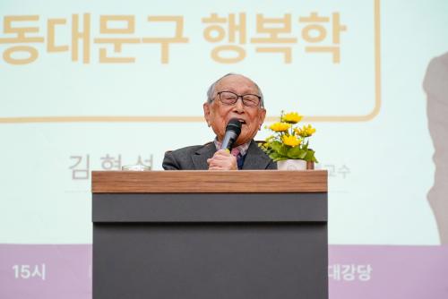 [Çѱ¹BBC¹æ¼Û µ¿´ë¹®=À̽ŵ¿±âÀÚ]¼­¿ï µ¿´ë¹®±¸´Â 27ÀÏ(È­) ±èÇü¼® ±³¼ö(¿¬¼¼´ëÇб³ öÇаú ¸í¿¹±³¼ö)¸¦ ÃÊÃ»ÇØ ¡®100¼¼ öÇÐÀÚ¿¡°Ô ¹è¿ì´Â µ¿´ë¹®±¸ ÇູÇС¯À» ÁÖÁ¦·Î ¿ÃÇØ ù ¹øÂ° ¡®ÇູÀ» ¿©´Â µ¿´ë¹® ¸í»çƯ°­¡¯À» ÁøÇàÇß´Ù. ±è ±³¼ö´Â À̳¯ ÀڽŠ¾Õ¿¡ ¸ðÀÎ 50¡¦