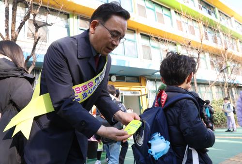 [Çѱ¹BBC¹æ¼Û °­³²=À̽ŵ¿±âÀÚ]°­³²±¸°¡ »õ Çб⸦ ¸Â¾Æ ¾ÈÀüÇÑ µîÇϱ·±æ Á¶¼ºÀ» À§ÇÑ ¹Î¡¤°ü¡¤°æ ÇÕµ¿ ±³Åë¾ÈÀü Ä·ÆäÀÎÀ» ÃßÁøÇÏ´Â °¡¿îµ¥, 21ÀÏ ¿ÀÀü 8½Ã 30ºÐ ¾ðºÏÃÊ ¾Õ¿¡¼­ Ä·ÆäÀÎÀ» ½Ç½ÃÇß´Ù. ÀÌ Ä·ÆäÀÎÀº ±³Åë¾ÈÀü ÁõÁøÀ» À§ÇØ Áö³­ÇØ 10¿ù ¼ÕÀ» ÀâÀº 5°³ ±â°ü¡¦