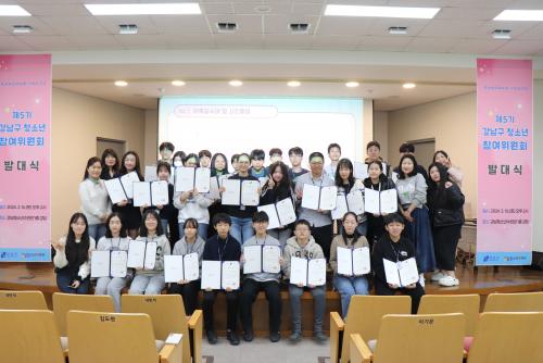 [Çѱ¹BBC¹æ¼Û °­³²=À̽ŵ¿±âÀÚ]°­³²±¸°¡ Áö³­ 3¿ù 16ÀÏ Ã»¼Ò³â 30¸íÀ¸·Î ±¸¼ºµÈ Á¦5±â °­³²±¸ û¼Ò³âÂü¿©À§¿øÈ¸¸¦ ¹ßÁ·Çß´Ù. À̵éÀº ¿ÃÇØ 12¿ù±îÁö û¼Ò³â Á¤Ã¥»ç¾÷À» ¸ð´ÏÅ͸µÇϰí û¼Ò³â Á¤Ã¥À» ¹ß±¼ÇØ Á¦¾ÈÇÒ °èȹÀÌ´Ù. û¼Ò³âÂü¿©À§¿øÈ¸´Â °­³²±¸ÀÇ Ã»¼Ò³â Á¤Ã¥¡¦