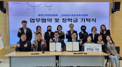 [Çѱ¹BBC¹æ¼Û Àü³²¿©¼ö]±¤¾ç±³À°Áö¿øÃ»(±³À°Àå À̰èÁØ)Àº Áö³­ 4¿ù 1ÀÏ, ±¤¾ç½ÃÇпø¿¬ÇÕȸ ȸÀå ¹× ÀåÇÐȸ, Èñ¸ÁÇ÷¯½º ȸ¿ø 20¿©¸íÀÌ Âü¼®ÇÑ °¡¿îµ¥ ¾÷¹«Çù¾à ¹× ÀåÇÐ±Ý ±âʽÄÀ» °¡Á³´Ù. ±¤¾ç½ÃÇпø¿¬ÇÕȸ¿¡¼­´Â °ü³» ´Ù¹®È­Çлý(Å»ºÏÇлý) ¹× ºÒ¿ìÇÑ °¡Á¤ÀÇ Çлý¡¦