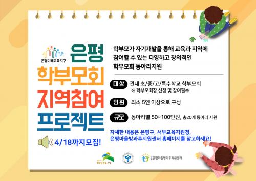[Çѱ¹BBC¹æ¼Û ÀºÆò±¸=À̽ŵ¿±âÀÚ]ÀºÆò±¸´Â ÇкθðÀÇ »çȸÂü¿©¸¦ Àû±Ø Áö¿øÇϰíÀÚ ÀºÆò¹Ì·¡±³À°Áö±¸¿¡¼­ ¡®ÀºÆò±¸ Çкθðȸ Áö¿ªÂü¿© ÇÁ·ÎÁ§Æ®¡¯¸¦ ¸ðÁýÇÑ´Ù°í ¹àÇû´Ù. ¡®ÀºÆò±¸ Çкθðȸ Áö¿ªÂü¿© ÇÁ·ÎÁ§Æ®¡¯´Â Çб³ÀÇ ´ëÇ¥¼ºÀ» °¡Áø Çкθðȸ Ȱµ¿À» Àû±Ø ¹ß±¼̷¡¦