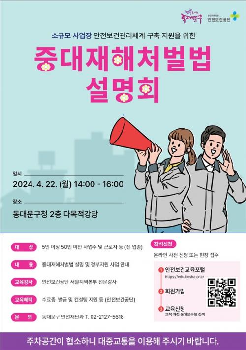 [Çѱ¹BBC¹æ¼Û µ¿´ë¹®±¸=À̽ŵ¿±âÀÚ]¼­¿ï µ¿´ë¹®±¸´Â ¿À´Â 22ÀÏ(¿ù) ¿ÀÈÄ 2½Ã ±¸Ã» ´Ù¸ñÀû°­´ç¿¡¼­ °ü³» 5ÀÎ ÀÌ»ó 50ÀÎ ¹Ì¸¸ ¼Ò±Ô¸ð »ç¾÷ÀåÀ» ´ë»óÀ¸·Î Áß´ëÀçÇØÃ³¹ú¹ý ¼³¸íȸ¸¦ °³ÃÖÇÑ´Ù°í ¹àÇû´Ù. ¼­¿ï½Ã´Â ¿ÃÇØ 1¿ù 27ÀϺÎÅÍ 50ÀÎ ¹Ì¸¸ »ç¾÷Àå¿¡µµ Áß´ëÀçÇØÃ³¹ú¹ýÀÌ¡¦