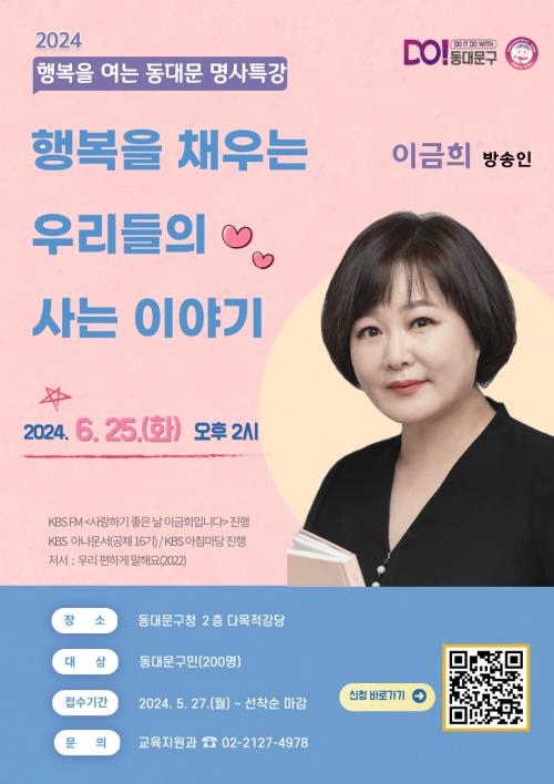 [Çѱ¹BBC¹æ¼Û µ¿´ë¹®±¸=À̽ŵ¿±âÀÚ]¼­¿ï µ¿´ë¹®±¸´Â 6¿ù 25ÀÏ(È­) ¿ÀÈÄ 2½Ã µ¿´ë¹®±¸Ã» 2Ãþ ´Ù¸ñÀû °­´ç¿¡¼­ ¹æ¼ÛÀÎ À̱ÝÈñ °­»ç¸¦ ÃÊûÇÏ¿© ¡®ÇູÀ» ä¿ì´Â ¿ì¸®µéÀÇ »ç´Â À̾߱⡯¸¦ ÁÖÁ¦·Î ¸í»çƯ°­À» ÁøÇàÇÑ´Ù. À̱ÝÈñ °­»ç´Â KBS ¡®¾ÆÄ§¸¶´ç¡¯À» ºñ·ÔÇÏ¿© ´Ù¾ç¡¦