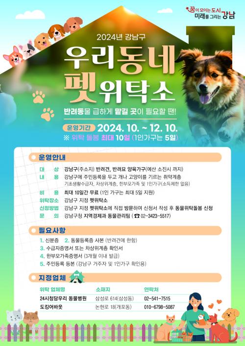 ¹Ý·Áµ¿¹° ±ÞÇÏ°Ô ¸Ã°Ü¾ß ÇÒ ¶§! °­³²±¸ ¡®¿ì¸®µ¿³× Æê À§Å¹¼Ò¡¯·Î ¿À¼¼¿ä~