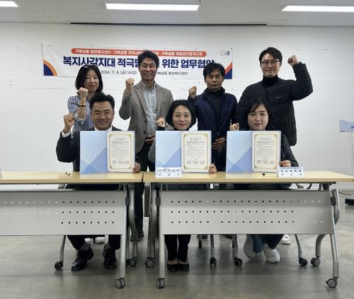 [Çѱ¹BBC¹æ¼Û ½ÃÈï½Ã=À̽ŵ¿±âÀÚ] ½ÃÈï½Ã °ÅºÏ¼¶µ¿ ÇàÁ¤º¹Áö¼¾ÅÍ¿Í Áö¿ª»çȸº¸ÀåÇùÀÇü(¹Î°£À§¿øÀå ¹Ú¼ø¿©)´Â Áö³­ 8ÀÏ °ÅºÏ¼¶µ¿ °³¾÷°øÀÎÁß°³»çȸ¿Í º¹Áö »ç°¢Áö´ë Àû±Ø ¹ß±¼À» À§ÇÑ ¾÷¹«Çù¾àÀ» ü°áÇß´Ù. °ÅºÏ¼¶µ¿ °³¾÷°øÀÎÁß°³»çȸ´Â 7¸íÀÇ °øÀÎÁß°³¾÷¼Ò(´ç±ÙºÎµ¿¡¦