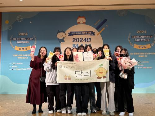 [Çѱ¹BBC¹æ¼Û ½ÃÈï½Ã=À̽ŵ¿±âÀÚ] (Àç)½ÃÈï½Ãû¼Ò³âÀç´Ü »êÇÏ ²Ù¹Ìû¼Ò³â¹®È­ÀÇÁý ¼Ò¼Ó µ¿¾Æ¸® ¡®È¯°æ°¨½Ã´Ü ´Þ¸®¡¯°¡ Áö³­ 23ÀÏ °æ±âµµÈ°µ¿ÁøÈï¼¾ÅÍ¿¡¼­ ÁÖÃÖÇÑ ¡®2024³â °æ±âµµÃ»¼Ò³âÀÚ¿øºÀ»ç´ëȸ¡¯¿¡¼­ µ¿¾Æ¸® ºÎ¹® ¿©¼º°¡Á·ºÎÀå°ü»óÀ» ¹Þ¾Ò´Ù. ¡®È¯°æ°¨½Ã´Ü ´Þ¸®¡¦