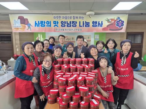[Çѱ¹BBC¹æ¼Û °æ³²ÇÔ¾È=À̽ŵ¿±âÀÚ] Çѱ¹»ýȰ°³¼±ÇԾȱº¿¬ÇÕȸ´Â ȸ¿ø 25¸íÀÌ Âü¿©ÇÑ °¡¿îµ¥ Áö³­ 26ÀÏ ¡®»ç¶ûÀÇ ¸À ¸¸´É¾ç³äÀå ³ª´® Çà»ç¡¯¸¦ °¡Á³´Ù. À̹ø Çà»ç´Â °ü³» µ¶°Å³ëÀΰú ¼Ò¿Ü°èÃþ¿¡ ÀÌ¿ô»ç¶ûÀ» ½ÇõÇϰí, Áö¼ÓÀûÀÎ °ü½É°ú ºÀ»çȰµ¿À¸·Î ÀÌ¿ôµéÀÌ µû¶æÇÑ¡¦
