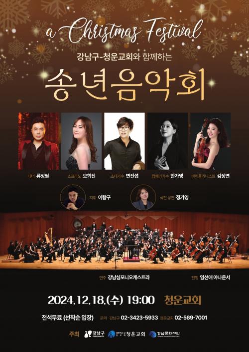 [Çѱ¹BBC¹æ¼Û °­³²±¸=À̽ŵ¿±âÀÚ] ²ÞÀÌ ¸ðÀÌ´Â µµ½Ã, ¹Ì·¡¸¦ ±×¸®´Â °­³²±¸°¡ ¿À´Â 12¿ù 18ÀÏ 19½ÃºÎÅÍ 20½Ã 30ºÐ±îÁö û¿î±³È¸(¾ðÁÖ·Î65±æ 6)¿¡¼­ ¡®°­³²±¸-û¿î±³È¸¿Í ÇÔ²²ÇÏ´Â ¼Û³â À½¾Çȸ¡¯¸¦ °³ÃÖÇÑ´Ù. ±¸´Â °­³²½ÉÆ÷´Ï¿ÀÄɽºÆ®¶ó¿Í Áö¿ª ¹®È­¿¹¼ú ´Üü °£ ±³·ù¡¦