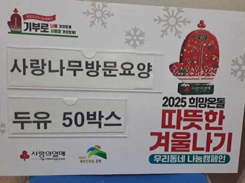 [Çѱ¹BBC¹æ¼Û ÀºÆò±¸=À̽ŵ¿±âÀÚ] ÀºÆò±¸ ºÒ±¤1µ¿Àº Áö³­ 18ÀÏ »ç¶û³ª¹«¹æ¹®¿ä¾ç¼¾ÅͰ¡ Áö¿ª »çȸ¿¡ µû¶æÇÑ ³ª´®À» ½ÇõÇϱâ À§ÇØ µÎÀ¯ 50¹Ú½º¸¦ ±âºÎÇß´Ù°í ¹àÇû´Ù. À̹ø ±âºÎ´Â ´ë»ç¶û³ª¹«¹æ¹®¿ä¾ç¼¾ÅÍÀÇ ÃëÁö¿¡ ¸ÂÃç °ü³» µ¶°Å ¾î¸£½Å°ú Àú¼Òµæ °¡Á¤À» ´ë»óÀ¸·Î¡¦