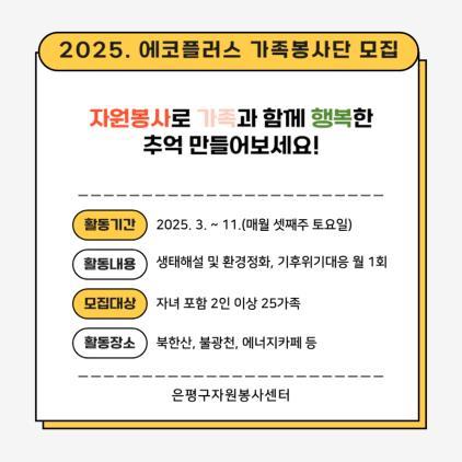 [Çѱ¹BBC¹æ¼Û ÀºÆò±¸=À̽ŵ¿±âÀÚ] ÀºÆò±¸´Â ±âÈÄ À§±â ´ëÀÀ°ú ź¼ÒÁ߸³À» À§ÇØ ³»´Þ 14ÀϱîÁö ¡®¿¡ÄÚÇ÷¯½º °¡Á·ºÀ»ç´Ü¡¯À» ¸ðÁýÇÑ´Ù°í ¹àÇû´Ù. ¡®¿¡ÄÚÇ÷¯½º °¡Á·ºÀ»ç´Ü¡¯Àº °¡Á· ºÀ»çȰµ¿À» ÅëÇØ °Ç°­ÇÑ °¡Á·¹®È­¸¦ ¸¸µé°í ÀÌ¿ô»ç¶ûÀ¸·Î È®»êÇØ ³ª°¡´Â µû¶æÇÑ Áö¿ª¡¦