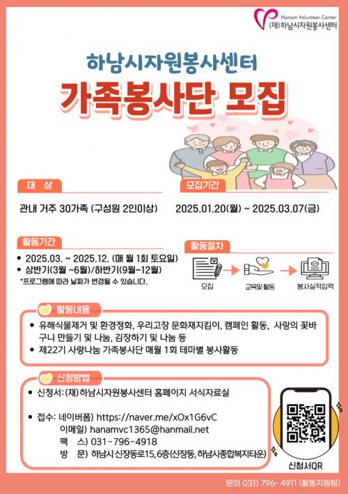 [Çѱ¹BBC¹æ¼Û Çϳ²½Ã=À̽ŵ¿±âÀÚ] Çϳ²½ÃÀÚ¿øºÀ»ç¼¾ÅÍ´Â ¿ì¸®Áö¿ª¿¡¼­ °¡Á·ÀÌ ÇÔ²² ºÀ»çȰµ¿À» ÇÒ ¼ö Àִ¡®Á¦22±â Çϳ²½ÃÀÚ¿øºÀ»ç¼¾ÅÍ °¡Á·ºÀ»ç´Ü¡¯À» ¸ðÁýÇÑ´Ù. Çϳ²½Ã¿¡ °ÅÁÖÇÏ´Â 2ÀÎ ÀÌ»óÀÇ °¡Á·À̶ó¸é ´©±¸³ª ½ÅûÇÒ ¼ö ÀÖÀ¸¸ç Á¢¼ö ±â°£Àº 2025³â 3¿ù 7ÀÏ(±Ý)±îÁö¡¦
