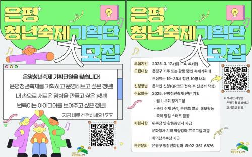 [Çѱ¹BBC¹æ¼Û ÀºÆò±¸=À̽ŵ¿±âÀÚ] ÀºÆò±¸´Â ¿À´Â 9¿ù °³ÃÖ ¿¹Á¤ÀÎ Á¦3ȸ ÀºÆòû³âÃàÁ¦¸¦ Á÷Á¢ ±âȹÇÏ°í ¿î¿µÇÒ ¡®ÀºÆòû³âÃàÁ¦±âȹ´Ü¡¯À» ³»´Þ 4ÀϱîÁö ¸ðÁýÇÑ´Ù°í ¹àÇû´Ù. ±¸´Â Áö³­ÇØ ÀºÆòû³âÃàÁ¦À§¿øÈ¸ û³âµéÀÇ ÀǰßÀ» ¹Ý¿µÇØ ¡®2024³â ÀºÆòû³âÆä½ºÆ¼¹ú¡¯À» ¼º¡¦
