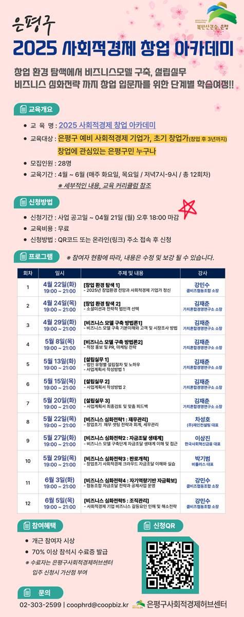 [Çѱ¹BBC¹æ¼Û ÀºÆò±¸=À̽ŵ¿±âÀÚ] ÀºÆò±¸´Â ¿À´Â 22ÀϺÎÅÍ »çȸÀû°æÁ¦Çãºê¼¾ÅÍ¿¡¼­ »çȸÀû°æÁ¦±â¾÷ â¾÷À» ÁغñÇÏ´Â ±¸¹ÎÀ» ´ë»óÀ¸·Î ¡®2025³â »çȸÀû°æÁ¦ â¾÷ ¾ÆÄ«µ¥¹Ì¡¯¸¦ ½Ç½ÃÇÑ´Ù°í ¹àÇû´Ù. À̹ø ¾ÆÄ«µ¥¹Ì´Â â¾÷ Áغñ ½Ç¹« ¿ª·®À» °­È­Çϱâ À§ÇØ 12ȸÂ÷ °úÁ¤¡¦