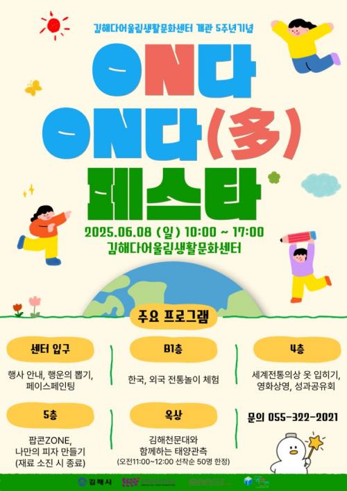 [Çѱ¹BBC¹æ¼Û °æ³²±èÇØ=³²±Ã¿µ±â±âÀÚ] (Àç)±èÇØ¹®È­°ü±¤Àç´Ü ±èÇØ´Ù¾î¿ï¸²»ýȰ¹®È­¼¾ÅÍ´Â ¿À´Â 8ÀÏ ¼­»óµ¿ ¼¾ÅÍ ³»¿¡¼­ °³°ü 5Áֳ⠱â³ä ¸¦ °³ÃÖÇÑ´Ù. ´Â ´©±¸µç ´Ù¾î¿ï¸²»ýȰ¹®È­¼¾Å͸¦ ¹æ¹®Çϸé Çà»ç¸¦ Áñ±æ ¼ö ÀÖ´Ù¡¦