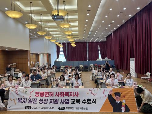 [Çѱ¹BBC¹æ¼Û µµºÀ±¸=À̽ŵ¿±âÀÚ] ¼­¿ï µµºÀ±¸°¡ 'Àå·Õ¸éÇã »çȸº¹Áö»ç º¹Áö ÀÏ²Û ¼ºÀå Áö¿ø±³À°' ¼ö·á»ý 32¸íÀ» ¹èÃâÇß´Ù. ÀÌ °¡¿îµ¥ ¼ö·á»ý 2¸íÀÌ Ãë¾÷¿¡ ¼º°øÇÏ¸ç ±³À°ÀÇ ½ÇÈ¿¼ºÀ» ÀÔÁõÇß´Ù. º» ±³À°Àº »çȸº¹Áö»ç ÀÚ°Ý Ãëµæ ÈÄ¿¡µµ ½Ç¹« °æÇè ºÎÁ·À̳ª °æ·Â ´ÜÀý¡¦