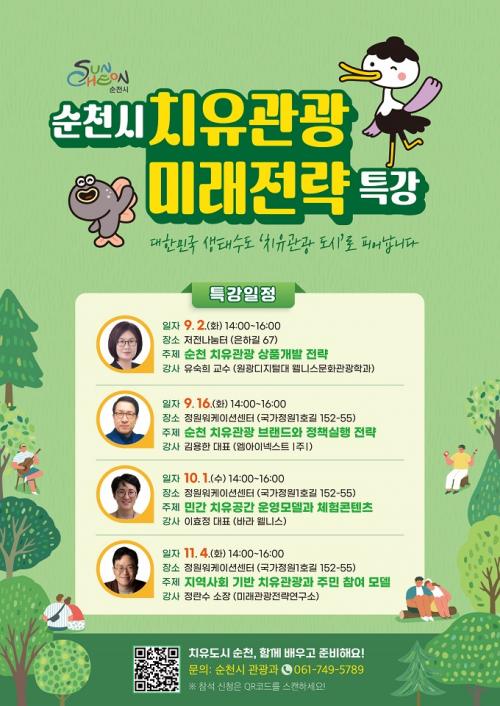 [Çѱ¹BBC¹æ¼Û ¼øÃµ=±è¿ëÈÆ ±âÀÚ] ¼øÃµ½Ã(½ÃÀå ³ë°ü±Ô)°¡ ´ëÇѹα¹ »ýżöµµ¸¦ ³Ñ¾î Ä¡À¯°ü±¤ ¼±µµµµ½Ã·Î µµ¾àÇϱâ À§ÇÑ Æ¯°­À» ¿À´Â 9¿ùºÎÅÍ 11¿ù±îÁö °³ÃÖÇÑ´Ù. ¡¸¼øÃµ½Ã Ä¡À¯°ü±¤ ¹Ì·¡Àü·« Ư°­¡¹Àº Çа衤»ê¾÷°è¡¤¹Î°£À» ´ëÇ¥ÇÏ´Â Àü¹®°¡ 4ÀÎÀÌ Âü¿©ÇØ »óǰ °³¹ß¡¦