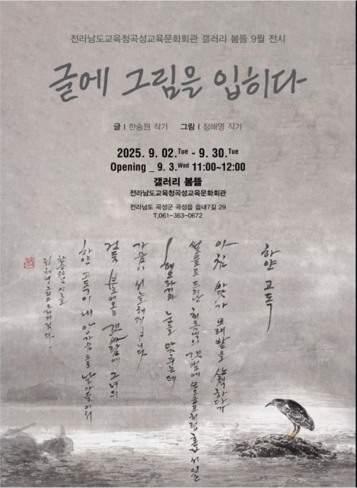 [Çѱ¹BBC¹æ¼Û Àü³²°î¼º=À̽ŵ¿±âÀÚ] Àü¶ó³²µµ±³À°Ã»°î¼º±³À°¹®È­È¸°üÀº 9¿ù 2ÀϺÎÅÍ 28ÀϱîÁö °¶·¯¸® º½¶ã¿¡¼­ ¡®±Û¿¡ ±×¸²À» ÀÔÈ÷´Ù¡¯¶ó´Â ÁÖÁ¦·Î ½ÃÈ­ ÃÊ´ëÀüÀ» ¿¬´Ù. À̹ø Àü½Ã´Â Çѱ¹ ¹®´ÜÀ» ´ëÇ¥ÇÏ´Â Çѽ¿ø ÀÛ°¡ÀÇ ±Û°ú Á¤ÇØ¿µ ÀÛ°¡ÀÇ ±×¸²ÀÌ ¸¸³­ ½ÃÈ­ 18Á¡À» ¡¦