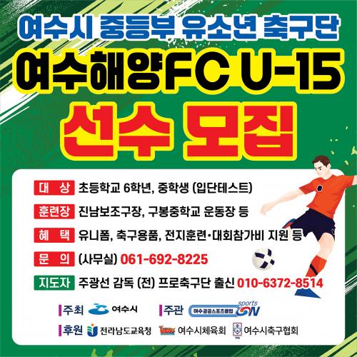 ¿©¼ö½Ã, ÁßµîºÎ À¯¼Ò³â Ã౸´Ü ¡®¿©¼öÇØ¾çFC U-15¡¯ ´Ü¿ø ¸ðÁý
