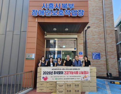 [Çѱ¹BBC¹æ¼Û ½ÃÈï½Ã=À̽ŵ¿±âÀÚ] »ïÁøÁ¦¾à(ÁÖ)ÀÌ ½ÃÈï½Ã Àå¾ÖÀεéÀ» À§ÇÑ µû¶æÇÑ Ãß¼®¸ÂÀÌ ³ª´®À» ½ÇõÇß´Ù. À̹ø ÈÄ¿ø ¹°Ç°Àº 4,200¸¸¿ø »ó´çÀÇ °Ç°­±â´É½ÄǰÀ¸·Î ½ÃÈï½Ã Àå¾ÖÀεéÀÇ °Ç°­ÇÑ »îÀ» ÀÀ¿øÇϱâ À§ÇØ ½ÃÈï½ÃÀå¾ÖÀκ¹Áö½Ã¼³ÇùÀÇȸ¿¡ Áö³­ 4ÀÏ Àü´ÞµÆ´Ù. ¡¦