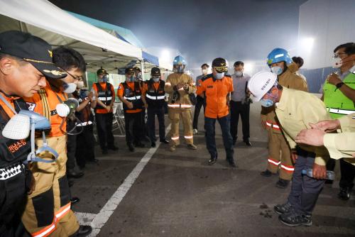 [Çѱ¹BBC¹æ¼Û Àü³²±¤¾ç=¹Ú±¤¿Á±âÀÚ] ±¤¾ç½Ã´Â 9¿ù 13ÀÏ ¿ÀÀü 8½Ã 38ºÐ, ±¤¾çÇ× µ¿Ãø¹èÈÄ´ÜÁö ³» ¹°·ùâ°í¿¡¼­ ¹ß»ýÇÑ È­ÀçÀÇ Á¶±â ÁøÈ­¸¦ À§ÇØ Àç³­¾ÈÀü´ëÃ¥º»ºÎ¿Í ÇöÀå ÅëÇÕÁö¿øº»ºÎ¸¦ ¼³Ä¡Çϰí Àü ºÎ¼­°¡ ÃÑ·Â ´ëÀÀÇϰí ÀÖ´Ù°í ¹àÇû´Ù. Á¤ÀÎÈ­ ±¤¾ç½ÃÀåÀº 9¿ù 17ÀÏ¡¦