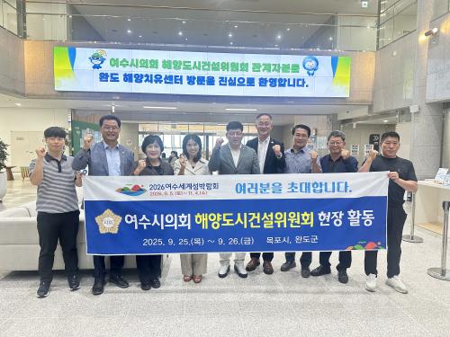 [Çѱ¹BBC¹æ¼Û ¿©¼ö=±è±â³² ±âÀÚ] ¿©¼ö½ÃÀÇȸ ÇØ¾çµµ½Ã°Ç¼³À§¿øÈ¸(À§¿øÀå ±¸¹ÎÈ£)´Â ÇØ¾ç¡¤¼ö»ê¾÷ °æÀï·Â °­È­¿Í µµ½ÃÀç»ý, Ä¡À¯¡¤°ü±¤ ½Å»ê¾÷ ¹ßÀüÀ» À§ÇÑ Á¤Ã¥ º¥Ä¡¸¶Å·À» À§ÇØ 9¿ù 25ÀϺÎÅÍ 26ÀϱîÁö 1¹Ú 2Àϰ£ ÀÇȸ»ç¹«±¹°ú ½ÃÁ¤ºÎ °ü°èÀÚ µî ÃÑ 16¸íÀÌ ¸ñÆ÷½Ã¿Í ¿Ï¡¦