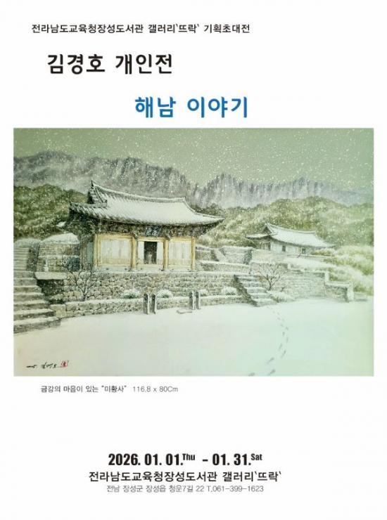 [Çѱ¹BBC¹æ¼Û Àü³²À强=À̽ŵ¿±âÀÚ] Àü¶ó³²µµ±³À°Ã»À强µµ¼­°üÀÌ 1¿ù ÇÑ ´Þ µ¿¾È °¶·¯¸® ¶ß¶ô¿¡¼­ ±è°æÈ£ ÀÛ°¡ ÃÊ´ëÀü ¡®Çس² À̾߱⡯¸¦ ¿¬´Ù. À̹ø Àü½Ã´Â ÀÛ°¡ÀÇ °íÇâÀÎ ÇØ³²ÀÇ ÀÚ¿¬°ú ¹®È­À¯»êÀ» ÁÖÁ¦·Î, µû¶æÇÏ°í ¼­Á¤ÀûÀÎ ¼öäȭ 10¿© Á¡À» ÅëÇØ °íÇâÀÇ Á¤½Å°ú¡¦