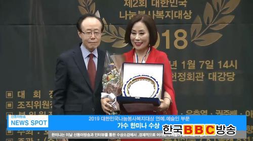 À̳¯ ´ëÇѹα¹ ³ª´®ºÀ»çº¹Áö´ë»ó ¿¬¿¹ ¿¹¼úÀÎ ºÎ¹®¿£, °¡¼ö Çѹ̳ª°¡ ´ë»óÀ» ½Ã»óÇÏ¿´½À´Ï´Ù.