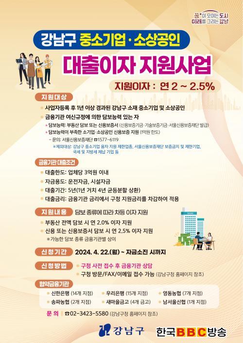 ´ëÃâ¿ø±Ý ÃÑ 1000¾ï ¿ø ±Ô¸ðÀÇ Áö¿ø »ç¾÷À¸·Î, ¾÷ü´ç ÃÖ´ë 3¾ï ¿øÀÇ ´ëÃâ¿ø±Ý¿¡ ´ëÇÑ ±Ý¸®¸¦ ±¸¿¡¼ ¿¬ 2~2.5%¸¦ Áö¿øÇÏ°í ³ª¸ÓÁö ÀÌÀÚ¸¦ º»ÀÎÀÌ ºÎ´ãÇÏ´Â ¹æ½ÄÀÌ´Ù. ºÎµ¿»ê ´ãº¸ÀÇ °æ¿ì ¿¬ 2%, ½Å¿ë ´ãº¸ÀÇ °æ¿ì ¿¬ 2.5%·Î ÃÖ´ë 5³â±îÁö Áö¿øÇÑ´Ù.