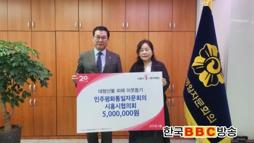 [Çѱ¹BBC¹æ¼Û ½ÃÈï½Ã=À̽ŵ¿±âÀÚ] ¹ÎÁÖÆòÈ­ÅëÀÏÀÚ¹®È¸ÀÇ ½ÃÈï½ÃÇùÀÇȸ´Â ÃÖ±Ù ¿µ³²±Ç ÀÏ´ë¿¡ ¹ß»ýÇÑ ´ëÇü »êºÒ·Î ÇÇÇØ¸¦ º» ÀÌÀç¹ÎµéÀ» µ½±â À§ÇØ Áö³­ 4¿ù 9ÀÏ ¼º±Ý 500¸¸ ¿øÀ» ½ÃÈï½Ã 1%º¹ÁöÀç´Ü¿¡ ±âŹÇß´Ù.