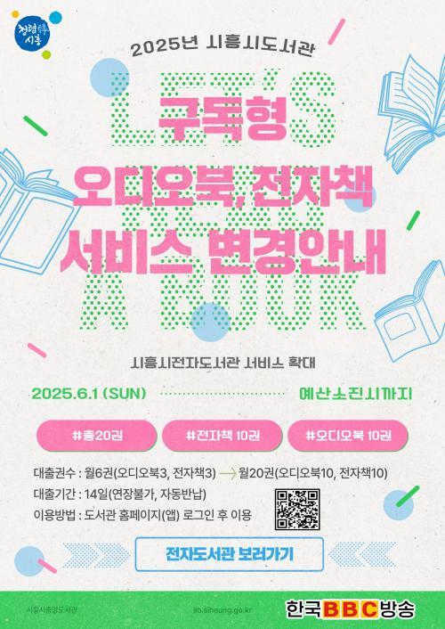 [Çѱ¹BBC¹æ¼Û ½ÃÈï½Ã=À̽ŵ¿±âÀÚ] ½ÃÈï½ÃÁß¾Óµµ¼­°üÀÌ ±¸µ¶Çü¡¤¼ÒÀåÇü ÀüÀÚÃ¥, ¿Àµð¿ÀºÏ ¼­ºñ½º¸¦ È®´ë ¿î¿µÇÑ´Ù. Áß¾Óµµ¼­°üÀº 2025³âºÎÅÍ ºÐ±âº°·Î ÇÑÁ¤µÈ ÀοøÀ» ¼±Âø¼øÀ¸·Î Á¢¼öÇÏ´ø ¹æ½ÄÀ» °³ÆíÇØ ½ÃÈï½Ãµµ¼­°ü ȸ¿øÀÌ¸é ´©±¸³ª º°µµÀÇ ½Åû ÀýÂ÷ ¾øÀÌ ÀüÀÚÃ¥°ú ¿Àµð¿ÀºÏÀ» ÀÚÀ¯·Ó°Ô ÀÌ¿ëÇϵµ·Ï °³¼±Çß´Ù. ³ª¾Æ°¡ 6¿ùºÎÅÍ´Â ±âÁ¸ 1ÀÎ´ç ¿ù ´ëÃâ °¡´É ±Ç¼ö¸¦ 6±Ç¿¡¼­ 20±Ç(ÀüÀÚÃ¥ 10±Ç, ¿Àµð¿ÀºÏ 10±Ç)À¸·Î È®´ë ¿î¿µÇÑ´Ù.