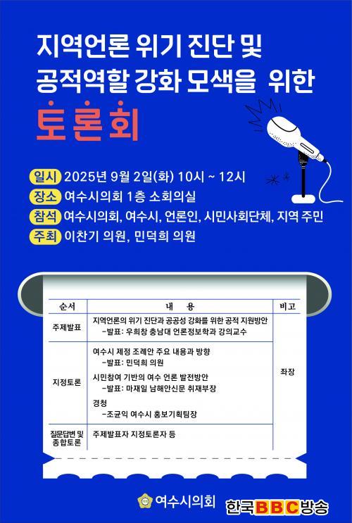 ÁÖÁ¦¹ßÇ¥´Â ¿ìÈñâ Ãæ³²´ëÇб³ ¾ð·ÐÁ¤º¸Çаú °ÀDZ³¼ö°¡ ¸Ã¾Æ ¡®Áö¿ª¾ð·ÐÀÇ À§±â Áø´Ü°ú °ø°ø¼º °È¸¦ À§ÇÑ °øÀû Áö¿ø ¹æ¾È¡¯À» Á¦½ÃÇϸç, À̾îÁö´Â ÁöÁ¤Åä·Ð¿¡¼´Â ¹Î´öÈñ ÀÇ¿øÀÌ ¡®¿©¼ö½Ã Áö¿ª¾ð·Ð ¹ßÀüÁö¿ø Á¶·Ê¾È¡¯ÀÇ ÁÖ¿ä ³»¿ë°ú ÃßÁø ¹æÇâÀ», ¸¶ÀçÀÏ ³²ÇؾȽŹ® ÃëÀçºÎÀåÀÌ ¡®½Ã¹Î Âü¿© ±â¹ÝÀÇ ¿©¼ö¾ð·Ð ¹ßÀü¹æ¾È¡¯À» ¹ßÇ¥ÇÑ´Ù.