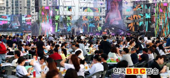 ÇϸÆÃàÁ¦-¸ÆÁÖ¼îÇÎ : Á¦3ȸ °ÁøÇϸÆÃàÁ¦Àå ºñ¾î¼¾ÅÍ¿¡¼ °ü±¤°´µéÀÌ ¸ÆÁÖ¸¦ ¹«ÇѸ®ÇÊÇϸç Áñ°Å¿öÇϰí ÀÖ´Ù.
