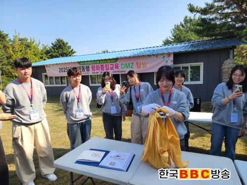 [Çѱ¹BBC¹æ¼Û Àü³²=À̽ŵ¿±âÀÚ] Àü¶ó³²µµ±³À°Ã»Àº 26~27ÀÏ °¿øµµ °í¼º±º ÀÏ¿ø¿¡¼ ¡®»çÁ¦µ¿Çà ÆòÈÅëÀÏ DMZŽ¹æ¡¯À» ¿î¿µÇß´Ù. À̹ø DMZŽ¹æ¿¡´Â 2018³â ¡®À²°îÅëÀϸ®´õ½ºÄ𡯠ÇÁ·Î±×·¥¿¡ Âü¿©Çß´ø Çлý°ú ¿î¿µÃßÁø´Ü 20¿© ¸íÀÌ ÇÔ²²ÇØ, 7³â Àü ŸÀÓĸ½¶À» ¹¯¾ú´ø À²°îºÎ´ë¸¦ ´Ù½Ã ã¾Ò´Ù.