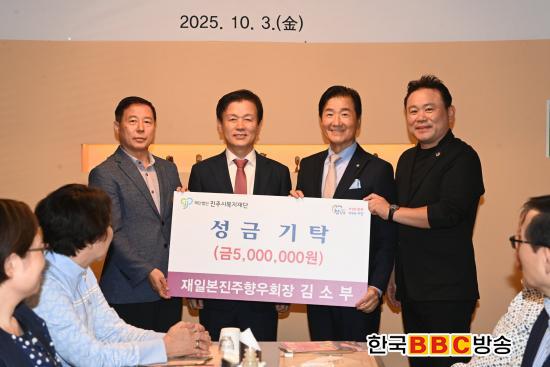Áö³­ 3ÀÏ¿¡´Â¡®ÀçÀϺ»ÁøÁÖÇâ¿ìȸ¡¯°¡ ¹æ¹®ÇØ Á¶±ÔÀÏ ½ÃÀåÀ» ºñ·ÔÇÑ ÁøÁֽà °ü°èÀÚµé°ú ±è¼ÒºÎ ȸÀåÀ» Æ÷ÇÔÇÑ Çâ¿ìȸ¿øµéÀÌ ¿ìÈ£¸¦ ´ÙÁö´Â ±³·ùÀÇ ½Ã°£À» °¡Á³´Ù. ƯÈ÷ À̳¯ Çâ¿ìȸ¿¡¼­ Áö¿ª»çȸ ¹ßÀü°ú º¹ÁöÇâ»óÀ» À§ÇÑ ¼º±Ý 500¸¸¿øÀ» ÁøÁֽú¹ÁöÀç´Ü¿¡ ±âŹÇÏ¸ç °íÇâ¿¡ ´ëÇÑ ±íÀº ¾ÖÁ¤À» ÀüÇϱ⵵ Çß´Ù.