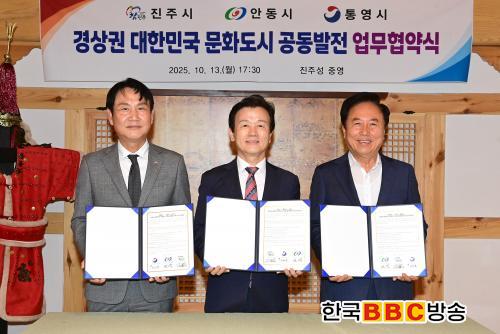 ÁøÁֽô 13ÀÏ ÁøÁÖ¼º ¡®Áß¿µ¡¯¿¡¼ Á¶±ÔÀÏ ÁøÁÖ½ÃÀåÀ» ºñ·ÔÇØ ±Ç±â⠾ȵ¿½ÃÀå, Çã´ë¾ç Å뿵ºÎ½ÃÀå µî 3°³ µµ½ÃÀÇ ½ÃÀå°ú °ü°èÀÚµéÀÌ Âü¼®ÇØ ¡®°æ»ó±Ç ´ëÇѹα¹ ¹®Èµµ½Ã ¾÷¹«Çù¾à½Ä¡¯À» °®°í ¹®Èµµ½ÃÀÇ ºñÀü°ú Çù·Â¹æ¾ÈÀ» °øÀ¯Çß´Ù.