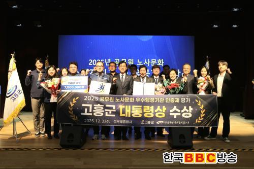 [Çѱ¹BBC¹æ¼Û °íÈï=¹Ú±¤¿Á±âÀÚ] °íÈﱺ(±º¼ö °ø¿µ¹Î)°ú Àü±¹°ø¹«¿ø³ëµ¿Á¶ÇÕ °íÈﱺÁöºÎ(ÁöºÎÀå ¼ÛÁ¤±â)´Â 3ÀÏ ÇàÁ¤¾ÈÀüºÎ°¡ ÁÖ°üÇÏ´Â ¡®2025³â °ø¹«¿ø ³ë»ç¹®È­ ¿ì¼öÇàÁ¤±â°ü ÀÎÁõÁ¦¡¯ ½É»ç¿¡¼­ ù µµÀüÀÓ¿¡µµ Àü±¹ ±âÃÊÀÚÄ¡´Üü ºÎ¹® 1À§¸¦ Â÷ÁöÇØ ´ëÅë·É»óÀ» ¼ö»óÇß´Ù°í ¹àÇû´Ù.