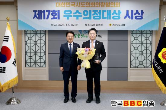 [Çѱ¹BBC¹æ¼Û ¿©¼ö=±è±â³² ±âÀÚ] Àü¶ó³²µµÀÇȸ ¹Ú¼±ÁØ ÀÇ¿ø(´õºÒ¾î¹ÎÁÖ´ç¤ý°íÈï2)ÀÌ Áö³ 16ÀÏ, ´ëÇѹα¹½ÃµµÀÇȸÀÇÀåÇùÀÇȸ°¡ ÁÖ°üÇÏ´Â Á¦17ȸ ¿ì¼öÀÇÁ¤´ë»ó¿¡¼ Ȱ¹ßÇÑ ÀÇÁ¤È°µ¿À» ÅëÇÑ Áö¹æÀÚÄ¡ ¹× Áö¹æÀÇȸ ¹ßÀü¿¡ ±â¿©ÇÑ °ø·Î¸¦ ÀÎÁ¤¹Þ¾Æ ¿ì¼ö ÀÇ¿øÀ¸·Î ¼±Á¤µÆ´Ù.