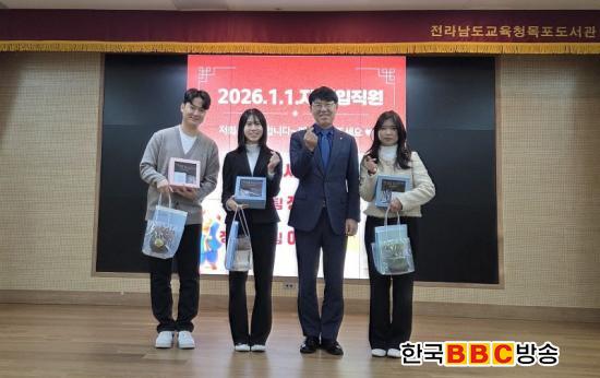[Çѱ¹BBC¹æ¼Û Àü³²¸ñÆ÷=À̽ŵ¿±âÀÚ] Àü¶ó³²µµ±³À°Ã»¸ñÆ÷µµ¼­°üÀº 2026³â 1¿ù 1ÀÏ ÀÚ·Î ÀÓ¿ëµÈ ½Å±Ô°ø¹«¿ø 3¸íÀÇ Ã¹ °øÁ÷ »ýȰÀ» ÀÀ¿øÇϱâ À§ÇÑ È¯¿µ Çà»ç¸¦ ÁøÇàÇß´Ù.