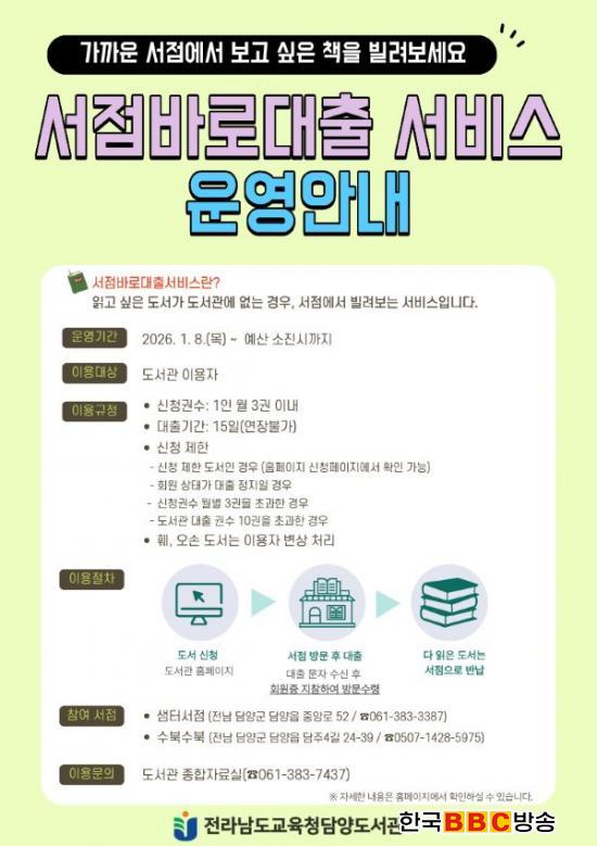 [Çѱ¹BBC¹æ¼Û Àü³²´ã¾ç=À̽ŵ¿±âÀÚ] Àü¶ó³²µµ±³À°Ã»´ã¾çµµ¼°üÀº ¿À´Â 1¿ù 8ÀÏ(¸ñ)ºÎÅÍ ¿øÇÏ´Â µµ¼¸¦ Áö¿ª ¼Á¡¿¡¼ ½ÅûÇÏ°í ´ëÃâÇÏ´Â ¡¸¼Á¡ ¹Ù·Î´ëÃ⼺ñ½º¡¹¸¦ ¿î¿µÇÑ´Ù.