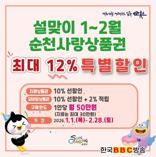 ½Ã¿¡ µû¸£¸é 2026³â 1¿ùºÎÅÍ ÁøÇà ÁßÀÎ ¼øÃµ»ç¶û»óǰ±Ç ÇÒÀÎÇà»ç¿¡ µû¶ó Áö·ùÇüÀº 10% ¼±ÇÒÀÎ, ¸ð¹ÙÀÏÇüÀº 10% ¼±ÇÒÀο¡ »ç¿ë±Ý¾×ÀÇ 2%¸¦ ÈÄij½Ã¹éÀ¸·Î Á¦°øÇØ ÃÑ 12% ÇýÅÃÀ» ¹ÞÀ» ¼ö ÀÖ´Ù.